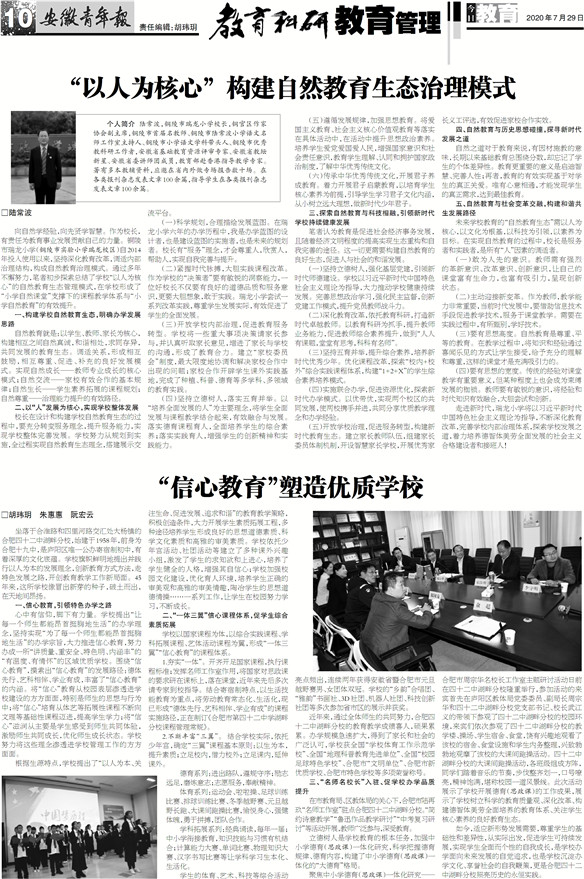 向自然学经验,向先贤学智慧。作为校长,有责任为教育事业发展贡献自己的力量。铜陵市瑞龙小学(铜陵市实验小学瑞龙校区)自2014年投入使用以来,坚持深化教育改革,调适内部治理结构,构成自然教育治理模式。通过多年不懈努力,笔者初步探索总结了学校“以人为核心”的自然教育生态管理模式,在学校形成了“小学自然课堂”支撑下的课程教学体系与“小学自然教育”的有效提升。