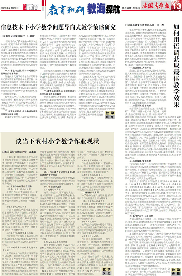 教 学研 究 信息技术下小学数学问题导向式教学策略研究