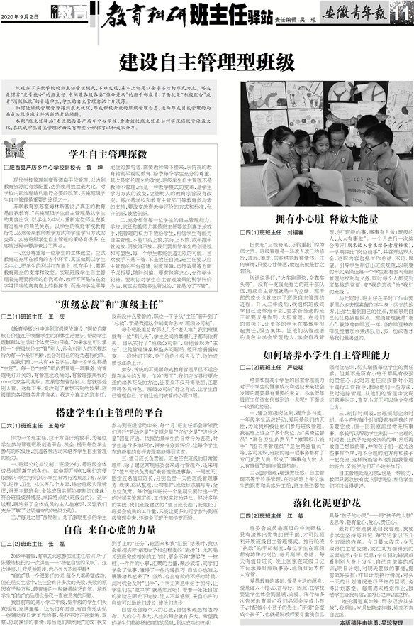 本期“班主任驿站”走进肥西县严店乡中心学校,看看该校班主任是如何实现班级资源最大化,在促成学生自主管理方面又有哪些小妙招可以和大家分享。