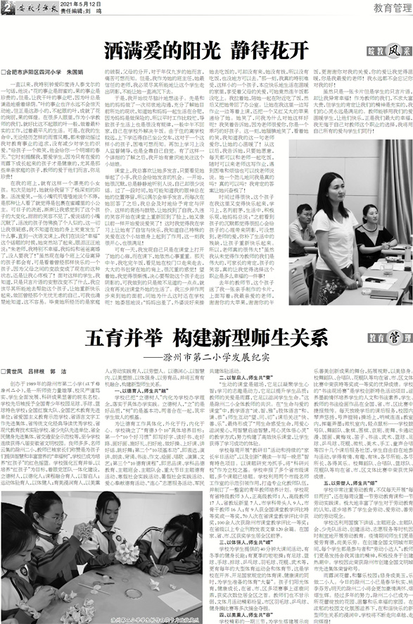 皖教风采 洒满爱的阳光 静待花开 □合肥市庐阳区四河小学 朱国娟