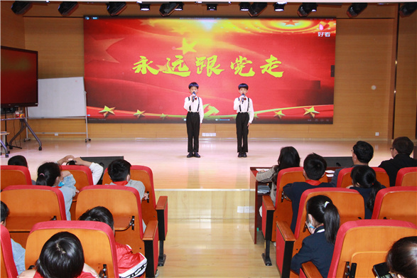 红领巾学党史,感受百年光辉。利用红领巾广播站对队员进行党史宣传。大队播音员每天中午开始播音,再现经典故事,感受共产党人的情怀。