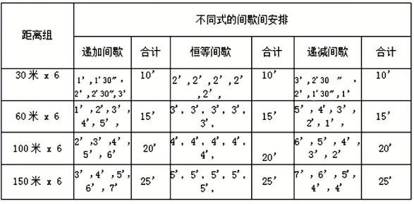 表二:不同距离、不同间歇方式间歇跑的时间安排