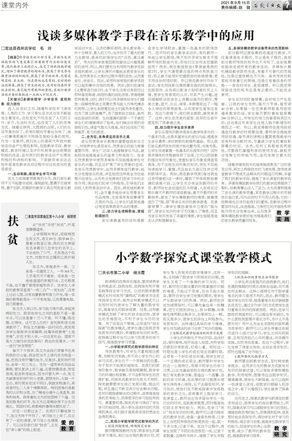 爱 的教 育 扶 贫 □淮南市田家庵区第十八小学 杨丽丽 此“扶贫”非彼“扶贫”,听笔者慢慢道来。 上学期期末考试,班级特困生张文杰,语文89分,数学88分,看着分数登记表,我的目光停留在名单最后几位学生的名字上,不由地松了口气。尤其是这个张文杰,对数字反应慢到让我怀疑人生。 张文杰,家庭条件一般。父亲是一名建筑工人。一年365天,几乎是天天不着家。母亲是一位地地道道的家庭妇女,文化程度不高,也不擅于管理家庭和孩子。该学生入学前的教育简直是“一穷二白”“一贫如洗”,没有上过幼儿园,没有启蒙教育和智力开发,唯一实施的教育就是给一个平板电脑,让他看着电脑,自己跟着学。 张文杰入学以后,学习能力格外弱,学起来特别吃力。跟其他学生之间的差距不是一星半点,可以说差着十万八千里。听不懂,吸收慢,忘得快。这可怎么办呢?急死我和语文授课教师了。和张文杰接触一段时间后,我发现该学生智商并没有障碍,纯属学前教育“土地贫瘠”,好在才刚入学,一切还有机会。国家不是大力推行扶贫政策吗?我也向党看齐,一对一进行“扶贫帮困”。 每天下午放学,张文杰会自己背着书包来到我的办公室,我会把当天上课内容先检查一遍,把他没有听懂的地方,反复讲,直到他听明白,会举一反三为止。往往一道简单的加法运算题,要反复讲上好几遍,还要放慢语速,放低语调,轻言软语地说,因为只要大声一点,张文杰就像受到惊吓的小老鼠,瑟瑟发抖,大脑一片空白,有时候实在说不明白,我就实物演示,再或者师生二人来个情景再现。特别困难的是教角的认识和分类,为了精准分清什么是直角、锐角和钝角。我带着张文杰把校园转了个遍。但是到数角的环节,张文杰还是糊涂得不分东西南北。那段时间,我都被折磨得快要抓狂了。 好在一切都过去了。在我们不懈地努力下,张文杰终于开窍了。学习能力上来了,反应有了一定的速度,学习信心也增强了。可以说目前已经“脱贫”,正在往“奔小康”的路上前进。