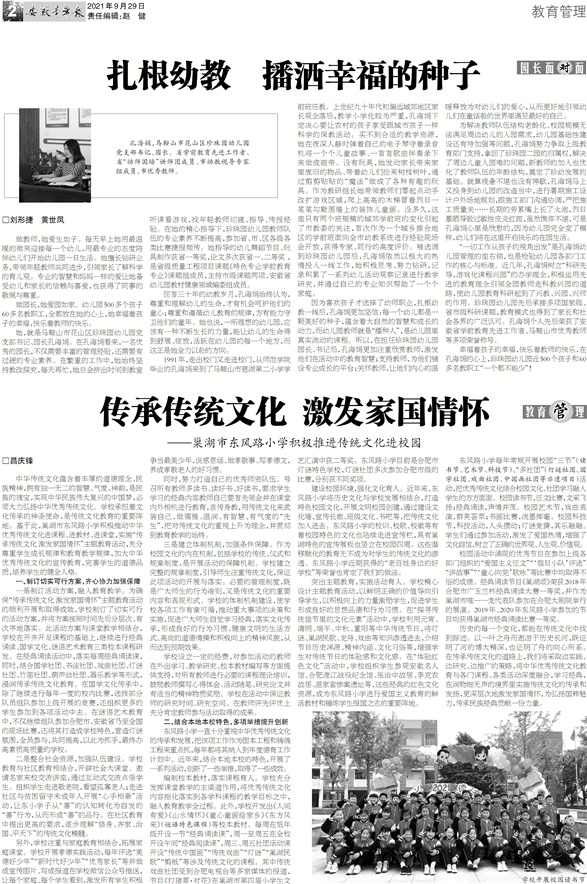 回首三十年的幼教岁月,孔海娟始终认为,尊重和理解幼儿的生命,才有机会呵护他们的童心;尊重和遵循幼儿教育的规律,方有能力守卫他们的童年。她也说,一所理想的幼儿园,应该有一种不断生长的力量,能让幼儿的生命得到舒展、绽放,活跃在幼儿园的每一个地方,而这正是她全力以赴的方向。