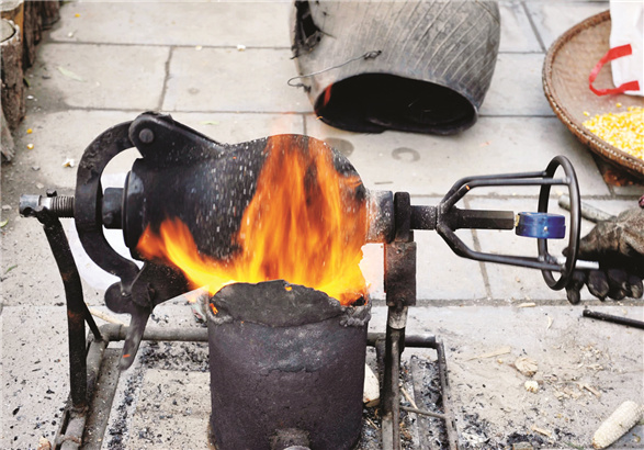 “爆米花嘞——”儿时只要听到那一声吆喝,口水便不禁在舌头上打转,脚步便不自觉地向那里奔去。 “手摇葫芦满面红,杯锅飞旋耀夜空。突见小孩掩双耳,晴天霹雳香正浓。”夕阳的余晖淡淡地散落在幽巷的顶端,宁静的乡村一角人头攒动。嘭!一声炸响,浓烈的香味扑面而来,爆米花啦!这是深深映在我儿时记忆里的印象。我们村爆米花的那个人是个残疾人,腿一瘸一拐的,每回见到他都是推个独轮车,穿着一套绿得发黄的军装,一双破旧的解放鞋。他车上的装备是一个手摇式的爆米花机,机子似乎从来也不清洗,黑咕隆咚的像个大葫芦结了层厚厚的灰烬,那是岁月留下的包浆吗?另一侧是一个木制风箱,风箱的出口连接着一口省柴炉。除此之外,还有一个长漏斗式的大竹箩,外加几块散发着松香味的木柴。 每到村头的小店门口广场,他就扯着嗓子喊:爆米花嘞!无须多大工夫,他的身边就会围拢上一群高高矮矮的孩子,也会有一些悠闲的老人。这时候,他不紧不慢地卸下装备,支起省柴的铁皮炉子来,架上爆米花机,又调试了几下风箱。馋的孩子是经不起诱惑的,早就急不可耐了,赶紧地往家跑去,缠着大人从洋铁箱中掏出一两斤干玉米粒出来,用竹畚盛着,手捏几个硬币,又从自家的柴堆里抽了几块硕大的柴火,一股脑地放在生意人面前,口中说道:“爆一锅玉米花。”生意人这才悠悠地点燃几片刨花做为引火的材料,放在铁皮炉子里,一会儿袅袅的烟燃起来了,他又用了一些细碎的木条,右手推几把风箱,风呜呜地直往炉里钻,火焰便像跳起了舞。 这时候,生意人从安装好的丫字型支架上取下爆米花机,用一根长筒中空的铁棍往葫芦头上只一撬,爆米花机就耷拉下了脑袋咧开了嘴来。他用自带的特制的竹筒量过三筒,说了声:多了,装不下了,剩的带回去吧。再从工具箱里摸出一个塑料瓶来,用小勺舀了少许的糖精往里一倒,麻利地用铁棍再次将葫芦头往下一搭,紧拧一下,便放回支架上,炉上的火苗正腾腾地对着“铁葫芦”加热。 师傅就坐在小凳上,像一个左手画方右手画圆的术士。他的左手摇着爆米花机,左三圈,右三圈,不时看看转手手柄上的仪表的盘面,估摸着气压值的峰值到来。右手很有节奏地推拉着风箱,不时还要停下来,往炉子上添几块柴。火苗腾腾地上升,孩子们的期待就更紧迫了。可时间就是个古怪的东西,你越着急,它似乎走的就越慢。一分钟,一分钟,像是煎熬,师傅也似乎更懂孩子们,则说着些宽慰的话,就快好了,就快好了。 终于师傅看看仪表的盘面,停住了风箱的撕扯,站起身来。从车上取下那个烟熏火燎了无数次的直筒竹篓,又变戏法似的掏了条宽大麻袋。一切准备停当,只见他忽地用一铁钳从炉上取下黑皮大铁葫芦来,往竹篓里一塞,用麻袋裹住竹篓可能漏出的空隙。又用铁棍套在了葫芦的嘴上,只脚往铁棍上一蹬,“嘭”的一声巨响。竹篓间冒出丝丝缕缕的热气,等师傅立起竹篓倾倒下葫芦里的多余米花时,孩子们已经急不可耐地你抓一把,我抓一把,直往嘴里塞。农村人都是乡里乡亲的,吃来吃去,也从不计较这些得失。等到将玉米花完全盛在竹畚中时,主人还会邀请大家都抓点尝尝。 那时的乡间也没有更多的零食,所以爆米花很受村人青睐。我最喜欢的是一种叫炸出来像狮子头的米花,这种狮子头的原料既不是玉米也不是大米,而是加工粉丝后刨下来剩余的边皮。这种粉丝皮,经过晾晒,既滑又韧,煮肉也好吃。但要放在爆米花里一炸,格外松脆,透着丝丝香甜,比今天市面上的旺旺雪饼更加嘠崩脆,而且绿色健康。 后来,生活水平日益提高,孩子们的零食也日益丰富了。爆米花师傅有时候一整天等不到一两单生意,围观的也寥落。再后来,终于爆米花师傅也改了行。但屯溪街上,卖爆米花的却不少,多是外地人,推个小车,沿街叫卖。或是固定在一个角落,现炸现卖。大如水桶的塑料袋装着各色爆米花产品,看上去挺诱人,有几次,我也不禁停下脚步,买上一斤尝尝,但不知怎的,再也找不回童年的那般滋味了。 前几天在抖音上,看到一则自行加工爆米花的视频,只需热油下锅,加白糖,搅拌均匀后翻炒,待到玉米粒炸裂时盖上锅盖,恒温闷上几分钟便可炸满一锅白花花的成品,并许诺和电影院同款。一时心动,下单得二斤生玉米,依葫芦画瓢,竟然一次操作便成功了,喜不自禁,仿佛有一种回到童年的纯真,又像是翻越重重山岭望见大海般成功的喜悦。 有些东西注定会成为一种记忆,在我们思绪的琴弦上永远的停留,在不经意的某一瞬间,也许会拨动那根弦,回音颤动而悠远。爆米花,一道难舍的零食,一种幸福的味道!