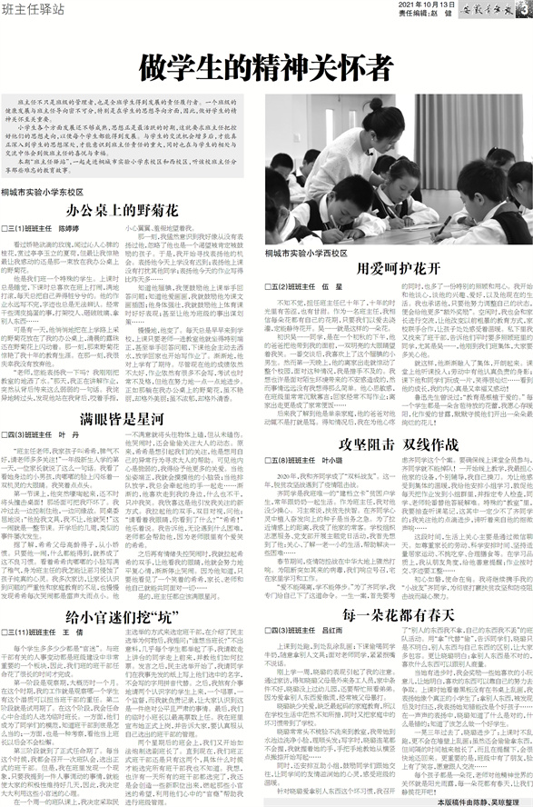 本期“班主任驿站”,一起走进桐城市实验小学东校区和西校区,听该校班主任分享那些难忘的教育故事。