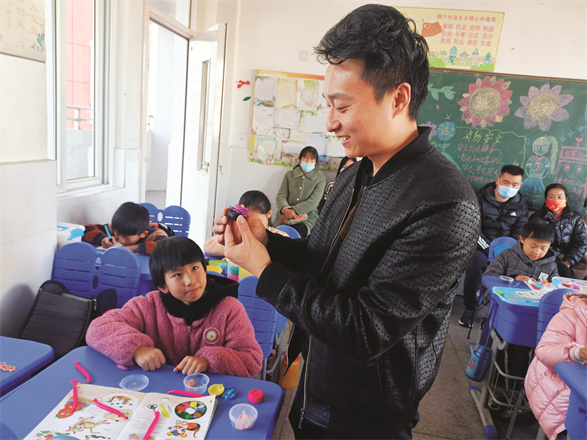 吴祥:让美育与德育完美融合 个人简介:吴祥,毕业于北方民族大学绘画专业,现任池州市贵池区永明小学专职美术教师,永明小学美术教研组组长,市级优秀指导教师。池州市书法家协会会员,安徽省美术家协会会员,贵池区美术家协会秘书长。指导学生参加各类比赛多次荣获省、市、区级一、二等奖,个人工笔画作品荣获池州市第四届文艺作品大赛前三名,多篇教育教学论文荣获市一等奖。 他热爱党的教育事业,以高度的事业心和强烈的责任感全身心地投入到教育教学工作之中;作为一名普通的人民教师,他勤勉踏实,任劳任怨,兢兢业业,在工作中顾全大局,勇挑重担,在业务上精益求精;从教八年来,他认真负责,踏实肯干,对于艺术教育有着热爱和执着,希望通过美育让学生们的一生更加富有色彩,让学生们更能发现生活中美的东西,形成积极乐观的人生态度。他,就是吴祥。 徜徉艺术课堂 多年来,不论是美术小组的辅导,还是班级教学工作的开展,吴祥都注重发展学生的思维,培养学生的创新素质,多给学生发展个性、培养创新能力的机会。 为落实“立德树人、五育并举”的根本任务,促进学校艺术教育的发展,全面提高在校学生艺术核心素养,加快永明小学美育进程,更好地推动学校艺体工作。吴祥带领组内五位专职美术教师认真学习新课程标准,落实课堂教学,不断提升专业素养,让每个永小学子在艺术课堂中“快乐健康、求真至善”,为学校艺术特色的发展贡献自己的力量。 开展丰富、健康的课外美术活动无疑是美术教育的有机组成部分,吴祥带领的美术教研组始终坚持“做实、做细、做精”的原则,在今年双减政策下,他充分利用学校课后服务,在学校开展陶艺、轻黏土、素描、粉印版画、创意儿童画等多个不同的美术兴趣小组,提高了学生美术学习兴趣,使更多的学生有更多的表现和锻炼的机会。他还充分利用课余时间为学生辅导,组织学生积极参加各类美术比赛活动,在师生双方的共同努力下,他们在集体与个人上都获得众多奖项,得到了广大家长的高度认可。 美育与德育并举 随着社会的不断发展与进步,我们的社会也越来越文明,但是道德的缺失问题也越来越凸显,那么在学生中进行德育教育也越来越重要,作为一名美术教师,虽然每星期每班只有一两节课,和学生接触的时间也不多,但吴祥一直坚持“德育首位”的原则,注重学生的思想教育工作,他教育学生“先做人后做事”。经常从小处着手,以父母之心待学生,让美育与德育结合起来,并利用各种途径进行教育。 在人美版小学五年级上册美术教材《创造绿色的生活》中,吴祥通过创作的方式让学生学习低碳、环保、绿色生活的科学知识,让学生认识到低碳环保在生活中的重要性,进而增强创造绿色生活的意识,激发学生对家乡美好生态环境的热爱和向往之情。从他的这些课上,不但让学生学会了绘画与手工制作,培养了学生热爱大自然的意识,还让学生懂得了保护环境的重要性。 为培养学生的爱国精神和民族情感,吴祥利用学生们喜欢涂涂画画的特点,有意识地去引导他们往积极健康的方向发展。在教授六年级《建筑艺术的美》时,他带领学生了解和绘画各地著名的古建筑,看到了祖国的大好河山,学习到了祖国源远流长的历史文化知识,培养和增强了学生对祖国的热爱之情。在举国上下抗击新型冠状病毒感染的肺炎疫情关键时刻,面对当前严峻的疫情形势,吴祥带领学生创作了“抗击疫情”主题水彩画,用丹青致敬医护人员,为全民抗击疫情助力加油。他自己创作的作品《碰肘战友情》成功入选“‘众志成城 决胜疫情’安徽省青年美术家协会网络美术作品展”。 在美术课上,不管是教材还是自己准备的课件里,吴祥都会准备一些优秀的作品给学生欣赏和参考,每次学生看到都会惊讶地大叫“好美啊”“画的真好”,从而导致有的学生不敢下笔。发现这个问题后吴祥就鼓励学生,发现画的好的或者进步很大的同学,及时表扬,给予充分的肯定,让学生明白,只要认真地去做就肯定会成功。在低年级教学中,吴祥还建立了奖励机制,事先告诉学生学期末的时候谁本子上的小红旗最多,前三名的同学都可以得到奖励。学生的兴趣和积极性一下就激发起来了,连平时本子都不交的学生都动起了手,从那时起,学生作业的完成度和质量都提高了不少。 吴祥常说,美术教育不仅仅只是单纯的美术知识的学习和技能的传授,还能利用美育在课堂上渗透德育,促使每个学生都能全面发展,养成积极向上的生活态度。在他的美术课上,学生不仅仅是学到了专业知识,还有分享和互帮互助的精神。他以自己独特的魅力向同学们传达着美的信息,演绎着工作的精彩,生活的鲜亮,以他对教育事业的热忱谱写着美好人生。