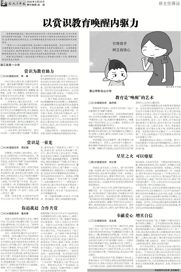 本期“班主任驿站”一起走进潜山市彰法山小学和望江县第一小学,看看该校班主任是怎么做的。