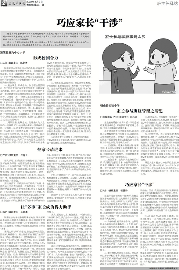 由于家长教育水平参差不齐,过多的参与会对教师的工作形成干预,阻碍班级工作的顺利开展。针对这一现象,班主任应该怎样妥善处理才能让家长的参与为班级工作锦上添花,笔者观点如下。