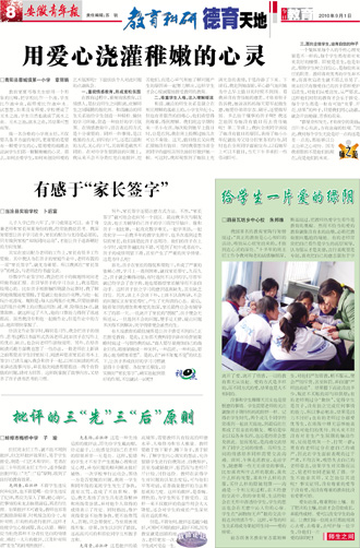 我国著名的教育家陶行知曾说过:“真正的教育是心心相印的活动,唯独从心底发出来的,才能到达心灵的深处。”十多年的班主任工作令我对陶老的话感触颇深,离开了爱,离开了情感,一切的教育都无从谈起。爱的方式是多样的,而不同方式的爱,结果也是大不相同的。