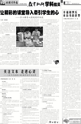 | 来源:本站原创 作者:马鞍山市新工房小学 方 燕 日期:2010-09-02 09:50 |