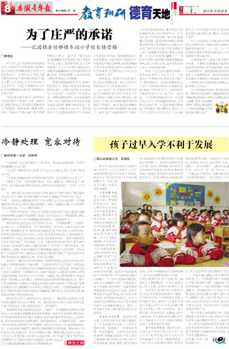 师生之间 冷静处理 宽容对待 □宿州市第一小学 刘丽丽 “刘老师!刘老师!”我停了下来,回头一看,原来是我班的一名平时比较腼腆的女生在喊。 “刘老师,我带的50元钱丢了!”女孩急切地说,眼中充满了焦急与不安。 “不用着急慢慢说是什么时候发现不见的?有没有落在什么地方?” “我是下了第一节课发现不见的。书包、抽屉、地上我都找过了,都没有!这可是爸爸给我买书的钱,回家后肯定要挨骂了。”孩子一口气说完。 这一段时间以来,班主任出差不在家,我这个代理“当家人”整天就怕学生出点什么差错,还有两天就可以交接了,偏偏这个时候又出了这么一件事。一想到这儿我的脑子炸了,但必须要让孩子安心地回家。于是我便说“你先别着急,同学们都已经回家了,现在不能解决问题,中午回家你先别向家人说,下午上学我来调查。” 下午我早早地来到了学校,有几位同学向我反映了情况,通过所反映的情况判断这钱极有可能被班上的某一位女生拿走了,但慎重起见,我还是嘱咐这几位学生,在没有确凿证据的情况下不能冤枉别人。 我不动声色地把这位女生叫到办公室,一开始和她聊了一些题外话,她十分小心地回答着。为了能和她进一步交流,让她主动承认错误,我让她做换位思考,想想如果是她自己丢了50元钱,心情会如何,回到家后家长的反应又如何,当自己知道是谁拿的后,又该如何做等。但她始终矢口否认,并说明自己的50元钱是家长给的。当时气得真想对其进行“强行镇压”,但还是静下心来,当我说要打电话给家长,核实她所说的50元钱来源时,她的心理防线崩溃了,终于流下了悔恨的泪水。“老师我错了,是我一时想买漫画书才糊里糊涂地做出了这样的事。老师求您千万别告诉任何人,我保证以后再也不做这样的事了!”面对这样平时看似老实的女孩,我的内心再一次地无法平静。 查出来了,我又该如何来处理呢?是通知其家长,还是当着全班学生的面宣布事情的真相?冷静分析一下这样做又有什么好处呢?如果这样做了对于一个六年级的女生而言她将如何面对以后的生活?如何面对自己的亲人和朋友?六年级的学生,毕竟不是成年人,他们在生理和心理等方面均未成熟,常在生活、学习中出现一些偏差,所以教师的宽容,给他们留有一份自尊,从某种意义上讲恰恰是治疗他们思想疾病的良方。我可以宽容她所犯下的错误,但她也必须为自己的行为负责。“欠债还钱”是最好的解决方法,而她现在又没有那么多钱怎么办呢?于是我和她商量:由我先不露声色地把钱放在丢钱女孩抽屉里,物归原主,但这钱要还我,就用她平时省下的零花钱来还。 丢钱的女孩笑了,拿钱的女孩心病也去了。她们两人还是像以往那样说笑,就像没发生任何事情一样。事后拿钱的女孩把从自己的零花钱中省下的钱还给了我,还钱时还说了一声“谢谢”。 英国教育家弥尔顿曾说过这样一句话:“一个完整健全的教育,能教育人以公正和宽大的胸襟来处理各种事情。”面对学生的错事,我们应心平气和地帮助他们认识缺点和错误,提高他们鉴别是非的能力,这种冷静、宽容也并非姑息迁就和袒护,实质是教育的一种策略和手段。这种“和风化细雨,润物细无声”的教育,能打动学生的心灵,起到教育的目的。从女孩所说“谢谢”中,我读到了她对我的信任和感激。我庆幸自己当时没有冲动,而是以另一种方式来解决问题。我想在她以后的人生路上,不会有什么思想包袱,也会很小心地走好每一步。“冷静”、“宽容”是老师在处理事情上尤其是在处理学生的错误上的两件法宝,有了它们我们的教育就会结出令人欣喜的果实!