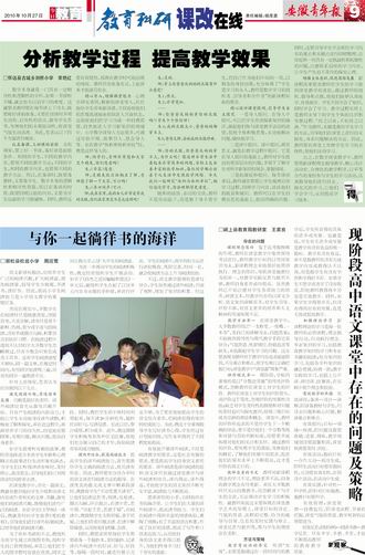 一得 分析教学过程 提高教学效果 □怀远县古城乡刘桥小学 宋艳红 数学本身就是一门具有一定顺序性和逻辑性的学科,如果一节课听不懂,就会加大以后学习的难度。这就要求教师要在每节课上下功夫,既要做好课前准备,又要在授课时多用生动的、启发性的语言,激发学生思考,发挥他们的主观能动性,使课堂气氛生动活泼。为此,笔者从以下四个方面进行阐述。 认真备课,上好课的前提 众所周知,要上好一节课,备好课是前提条件。相同的学生,不同的教学内容,要用不同的教学方法;不同的学生,相同的教学内容,也要用不同的教学方法。所以,在备课时,既要备教材,又要备学生。数学本身的逻辑性和顺序性很强,所以在备课的时候,既要回顾以前的内容,又要为学生后面的学习做铺垫。同时,教师还要有预见性,预测在教学时可能出现的情况。教师只有准备充足,上起课来才能游刃有余。 精心导入,增强课堂魅力 心理学研究表明,精彩的课堂导入,往往能给学生带来新奇感,不仅能使他们的思维迅速地由抑制进入兴奋状态,还能使他们把学习当成一种自我需要,自然地进入学习新知识的情境中。小学数学课导入方法很多,可通过实验开路、故事引入、悬念导入等。如在教学“体积和体积单位”时,我是这样导入的。 师:同学们,老师非常想和大家交个朋友,你们愿意吗? 生:(齐答)愿意。 师:是朋友就应该相互了解,老师想了解一下大家,可以吗? 生:(异口同声)可以。 师:我在家里,我的女儿非常爱穿我的衣服,你们在家里是不是也这样呢? 生:是的。 师:穿上你爸爸或妈妈的衣服有什么感觉? 生1:很大。 生2:非常宽松。 …… 师:你爸爸或妈妈穿你的衣服吗?(学生个个很惊讶) 生4:我的衣服太小,爸爸妈妈都穿不上。 生5:爸爸太胖,会把我的衣服撑破。 …… 师:你的衣服,你爸爸或妈妈穿不上,为什么呢?像这样日常生活中看起来非常简单的问题,实际上包含着丰富的数学知识,每位同学都应该善于从生活中发现数学问题。今天我们一起研究“体积与体积单位”,相信通过学习,你会理解得更清楚。 随和的话语、亲切的交谈,教师不是居高临下,而是俯下身子看学生,把自己作为他们中间的一员,以朋友的身份出现,充分体现了“学生是学习的主人,教师是数学学习的组织者、引导者和合作者”的新课程标准的要求。 精心设计课堂提问,引导学生自主探究 一是导入提问。在导入中提问,可以把学生带进探索知识的海洋,激起他们参与课堂教学活动的欲望,促使个体积极思维,主动地解决问题,愉快地学习。 二是课中提问。课中提问,顾名思义,就是在教学过程中提问。它是在导入提问的基础上,教师对学生提出的更深层次的问题,多用于了解学生对所学新知识的领会、掌握情况。 三是拓展延伸提问。每节课结束后,教师通常都要让学生梳理总结学习过程,回顾学习内容,谈谈他们的收获和疑问。教师可以在学生自我反思的基础上,提出明确的问题。同时,还要引导学生学会抓住学习内容的重点和关键点进行回顾整理,总结延伸一些具有一定挑战性和拓展性的问题,注意联系后续的学习内容,让学生产生迫不及待的探究心理。 增强主体意识,促进思维发展 新课程改革要求教师把学生的学习放到课堂教学的首位,通过教师的组织、指导和点拨,使他们能够认真地学、有效地学。学生不仅学会了知识,同时学会了学习。教学过程实质上是教师主导下的学生个体的认识和发展过程。“授之以鱼,不如授之以渔。”作为教师,关键是教给学生学习的方法,引导他们在课堂上进行自主探究,寻求问题解决的方法。因此,教师要在课堂上发挥学生学习的主体性,使他们主动学习。 总之,在数学课堂教学中,教师要用新课程理念指导教学,精心设计活动化、合理化的教学程序,以平等合作的身份参与学生的学习活动,认真指导他们进行自主、探究式的学习,让他们学会学习,从而提高学习效率。