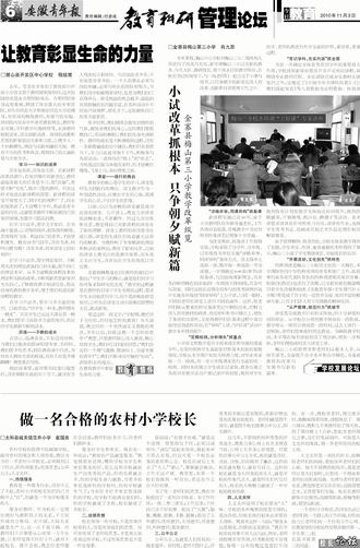 校长论坛 做一名合格的农村小学校长 □太和县城关镇范井小学 崔国良 农村学校的管理不比城镇学校,面对农村的观念和人情世故,我认为当好一名农村小学校长,必须做到以下四点,即热情服务;统领思想;公平公正;人文关怀。 一、热情服务 教育是一种服务行业,没有什么了不起,农村小学的校长别把自己当做什么“官”,你就是一个为学校服务的人。 服务好教师。作为校长一定要处理好与教职员工的关系,千万别形成对立格局。在中国,人际关系就是生产力,这一点千真万确。给教师们干点事要从心底里一万个乐意,让老师觉得不好好工作,就对不起校长。像开会前,我会给老师擦好会议桌;教师们业务学习,给老师们倒杯水。 服务好学生和家长。现在有一种说法:“教育的产品就是服务。”我觉得很有道理,哪所学校为学生和家长服务的好,那么这所学校就能生产出优秀的产品,你的生源就会多,你的学校生命力就强,当更多的家长选择你的学校时,你的学校就牛气了;当有好多好多家长想选择你的学校,而学校不能满足他们时,你的学校就成了名校,校长就成了名校长。 二、统领思想 校长领导一所学校,不是统领学校里的人,而是统领他们的思想。而只有统领了老师的思想,才是真正地统领这所学校,不过统领思想也不是一件容易事。 俗话说:“有德才有威。”就是这个道理。要想取信于民,必须以诚相待。“诚信”说起来简单,做起来并不那么容易,但这可是一个校长必备的素质和心态。校长在诚信上失去了“人心”“群心”,事事就会被动,工作无法开展。我常想,如果一个校长能做到一呼百应,那还有什么办不好的事。 为了统一老师们的思想,我在学校提出了一系列办学体系。如工作作风:一抓二靠三落实;工作信条:干好自己该干好的事。提出了“五勤”:脑勤、嘴勤、眼勤、手勤、腿勤;提出了五种意识:团结意识,大局意识,质量意识,科研意识,服务意识。 三、公平公正 公平公正,也就是人们常说的一碗水端平。有时候,老师不图什么,评优秀的名额总是有限的,职称评聘也是有政策有制度的。老师们就是图个真实,就是图个校长做事公平公正,阳光操作。 这几年,不管组织何种类型的评优选先,我都力争让榜上有名者理直气壮,让榜上无名者心甘情愿。只要你办事公平公正无私,校长就是没权、没钱、没势,但却做到了廉洁,这样的校长就有魅力,就有号召力。这样的校长就是为人师表的带头人,就是学校的形象代言人,就是师生们可信任的人,校长的人格魅力就成了一种学校的教育资源。 四、人文关怀 人文关怀说明了校长要有“人”味。学校的各种规章制度是无情的,是冰冷的,但校长执行起来必须要有人情味。我喜欢这样一句话:“朋友永远是朋友,但错误还是错误。”我在学校常说对事不对人这句话,例如,老师请假我非常热情,但考勤制度不容侵犯,每周一公布的规定是雷打不动的。有一次,我校李老师,周五放学时,她腹痛得很厉害,请假休息了。周六周日,我和几个男教师加了两天班,到了周日晚上7点钟,想起李老师周五之事,急忙打电话询问。可能是人文关怀的缘故,周一李老师坚持到校上班。 人文关怀是一剂良药妙方,能解除老师们的病痛,更能抚平老师们的心痛。每天早晨我到校较早,遇见老师总是先打招呼,总想找一个理由和老师拉近距离沟通。处理与老师们的关系,我觉得是实实在在的,这既需要艺术,又需要笨打实揣。校长在教师群体中应做到:沟通零距离,接触等距离,观望远距离。 一个农村小学校长,你没有办法让老师们有一个舒心的工作环境,但你有能力让老师们有一个好的工作心情。在我领导的学校始终呈现着教师第一,学生第二,校长最多排第三的局面。