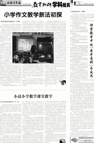 教学笔记 课堂教学中的“出乎意料”与反思 □宿松县实验小学 吴柳燕 在日常教学中,学生在课堂上“出乎意料”的回答往往会给教师留下深刻的印象。在学生“出乎意料”的回答过程中,教师可以捕捉到他们创新意识的火花,领略到他们智慧的闪光点。 案例:街心花园中圆形花坛的周长是18.84米。花坛的面积是多少平方米? 师:会做这道题目吗?请同学们试试吧。(一会之后) 师:谁来说说,你是怎么做的? 生1:我是这样做的“3.14×(18.84÷3.14÷2)2”,小括号里求的是圆的半径,然后再利用圆面积的计算公式求面积。 师:说得太好了! 生2:老师,我还有一种做法,是这样的“(18.84÷2)×(18.84÷3.14÷2)”(教师为之一怔,教室里哄笑起来,生2显得有些尴尬) 师:老师看不出你这样做有什么道理,请坐。 生2:老师,我这样做是有道理的,我是采用上一节课学习的推导圆面积公式的方法,将这个圆剪拼成一个长方形,这个长方形的长是圆周长的一半,即(18.84÷2),这个长方形的宽就是圆的半径,即(18.84÷3.14÷2),长方形的面积等于长乘宽,所以,圆的面积就是上面的式子。 (全班同学都信服地点头微笑,老师激动地涨红了脸,在长久的掌声中生2不好意地挠头) 在这个案例中,学生的表现非常出色,精彩的回答,创造性的构思,简洁的解法,不仅使同学们震惊,也令教师折服。无疑,这样的学生是优秀的,是值得表扬和为之骄傲的。 在今天这个知识爆炸的信息时代,作为小学数学教师,要适应教育改革的发展,充分认识自己在教学领域的作用,运用新的教育理念,不断提高对数学教育的认识,指导教学实践。在新课程背景下,教师如何转变、更新观念,真正落实以学生为本、引导学生自主探究的数学教学呢? 首先,要营造民主氛围,激发学生学习兴趣。建构主义认为,课堂教学环境和情境的营造是获得数学学习成效的重要途径。在课堂教学中,教师应与学生建立和谐、平等的师生关系,加强师生之间、学生之间的交流,鼓励学生把自己的观点,想法讲出来;教师应把更多地关怀、尊重、理解和信任带给学生,积极营造一种融洽、民主的学习氛围。 其次,要转变教师角色,培养学生创新思维。长期以来,在数学教学领域,学生与教师主体地位发生了偏轨。教师的包办、代替,在很大程度上削弱了学生学习的主体地位。这就要求教师将教学起点的确定,不能只立足于学生对数学知识的掌握,更要关注数学思考与问题解决能力的培养。教学中,应改变把现成的知识结论塞给学生的教学方式,尽量让学生在自主探索、合作交流的基础上,获取知识,理解知识,在获取知识的同时,积累解决问题的经验。教师不是知识的传播者,而是学生学习过程中的引导者和合作者。 最后,要转变评价观念,挖掘学生创新潜能。一般而言,当学生探索某一规律,研究如何解决某一新的数学问题时,教师的反馈评价不宜过快。因为学生在思维时有他自己的方向,可能成功,也可能失败。如果教师简单地去肯定或否定学生的结论,那么学生的思维之门可能只朝着教师指出的方向打开。这不利于培养学生多角度思考问题的习惯,也不利于师生间思想情感的交流,学生积极的数学思维活动就可能被教师扼杀。因此,教师应学会认真聆听学生的发言,鼓励他们大胆质疑,合理猜想,当学生思维出现偏差时,教师要给予积极的引导,使他们获得真知。 课堂教学之所以充满生命活力,是因为我们面对的是一个个鲜活而富有个性的生命体。因此,当课堂教学出现意外时,作为教师要勇于面对,用自己的行为去感化学生,化尴尬为精彩。