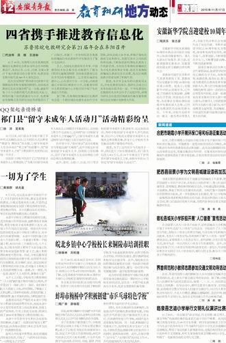 四省携手推进教育信息化 苏鲁豫皖电教研究会第21届年会在阜阳召开 □代治华 吕 振 王洁如 11月10日,为期两天的苏鲁豫皖接壤地区电教研究会第21届年会在阜阳隆重召开,来自江苏、山东、河南、安徽4省17个地市教育局的分管领导、电教馆馆长和学校代表360多人参加会议。 此次会议围绕“贯彻落实《国家中长期教育改革和发展规划纲要》,加快推进教育信息化发展进程”这一主题,就新形势下中小学教师现代化教育技术能力、网络环境下的资源建设与共享、电教事业发展特点及其研究动态等课题进行了广泛探讨,并就下一步如何促进苏鲁豫皖接壤地区电化教育科学发展进行了集中交流研讨。 会上,全国电化教育知名专家、中国教育技术协会秘书长刘雍潜作了题为《贯彻实施规划纲要 加快推进教育信息化步伐》的专题报告。江苏省东海县电教中心,山东省济宁市一中分校,河南省商丘市梁园区解放村小学,安徽省阜阳市太和县税镇中心学校分别介绍了电化教育工作经验。 据了解,苏鲁豫皖接壤地区电教研究会是一个跨区域的电教专业协作学术团体,研究会成立21年来,积极开展电化教育交流和研究,加强兄弟市之间的联络和沟通,不断探索新时期电化教育工作的新思路,为加快苏鲁豫皖接壤地区各市电化教育事业发展,推进苏鲁豫皖接壤地区教育信息化进程,提高区域教育教学质量发挥了积极作用。 据悉,本次年会由阜阳市教育局主办,市电化教育馆承办,是研究会成立以来参加地市最多的一届。中央电教馆处长魏刚对本次年会给予了高度评价,并期待研究会在推进区域教育均衡发展和教育信息化发展中发挥更大作用。
