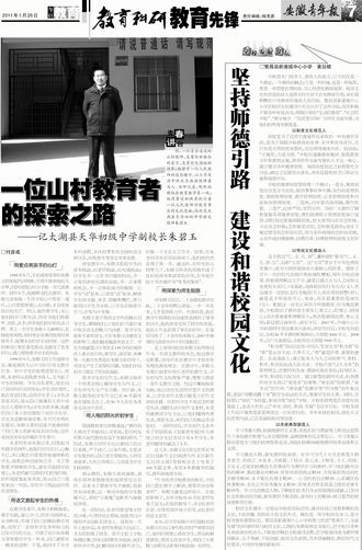 他,一位普普通通的山村教师,没有惊世骇俗的豪言,没有惊天动地的壮举;他坚守一位人民教师的道德操守,以工作生活中的点点滴滴阐释着为人、为师之道,默默地耕耘在教育教学第一线;他用挚爱和执著践行着一位人民教师对教育事业的无比忠诚;他就是太湖县天华初级中学语文教师朱碧玉。