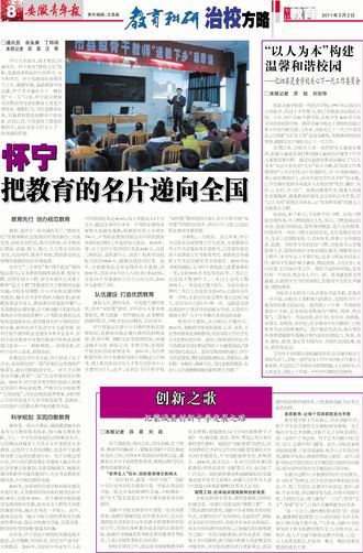 “以人为本”构建温馨和谐校园 ——记泗县灵童学校关心下一代工作委员会 □本报记者 苏 锐 刘安华 泗县灵童学校是一所民办学校,1997年从创办幼儿园起步,经过十多年努力,现已发展成为包括幼儿园、 小学、初中共80个教学班,在校学生3600多人的全日制寄宿制学校。随着灵童学校关工委组织的成立和工作的不断完善,几年来,该校关心下一代工作委员会,以创建“五好关工委”活动为载体,发挥教育经验的优势,踏踏实实开展好关心下一代工作。 长期以来,该校关工委一直把研究儿童成长规律,拓展儿童成长途径和创建儿童成长环境等工作列入重要议事日程。通过反复研究和论证确定了“以人为本”突出人性化的“五好”育人方略,即各项工作都要围绕“让孩子们生活中充满阳光,学习中轻松愉快,身心成长健康向上,活动丰富充实形式多样”的主题,让学生特别是留守未成年人在校园里“吃好、睡好、玩好、心态好、学习好”。体现出尊重科学,尊重人的成长发展规律,尊重教育的原生态实质的办学思想,把“以人为本”的理念具体化,从“生命和发展”的意义上实践育人工程。 俗话说,积千积万,不如积个好习惯。好的习惯能受用终身,坏习惯能毁灭人生,所以,习惯是命运的主宰,是成功的轨道,是终身的财富,是人生的格调。但要培养一种好习惯又谈何容易,尤其是现在的孩子,生活上长期饭来张口,衣来伸手,性格上又多属自私、孤僻。为培养学生的良好习惯,该校首先从常规管理入手,除继续抓好学校的路队建设、两操等亮点工程外,本学年从上学期开始,还着力抓宿舍自治工作,指导学生做好被子叠放、物品摆放、卫生打扫、室内布置、打扮装点等工作。现在不论何时何地,走到任何一个房间,都会令人耳目一新。再者就是抓文明就餐,在教育学生节约的同时,加强对学生的无声就餐习惯的教育。 为使孩子们的学习生活更加丰富多彩,思维进一步开阔,该校关工委积极与政教处、党组织合作开展各项有意义的活动:一是利用上下午第一节课前预备的十分钟,在各班倡导和推行“两唱、两背、两宣誓”;二是每天一节活动课,有计划、有内容、有措施、有落实、有检查、有评比,充分调动学生兴趣的广泛性和参与活动的积极性;三是开展系列活动,每大周各年级都要根据年级特点举行诸如自理能力、体育、美术、歌咏、朗诵、器乐等不同内容、不同形式的比赛、娱乐、联欢等活动。 父母对子女的最大牵挂就是平安,在灵童学校关工委的号召下,学校一直把安全工作作为学校工作重中之重来抓,先后出台了多项安全管理措施,人人讲安全,人人抓安全,全校上下形成一个科学可靠的安全网络。