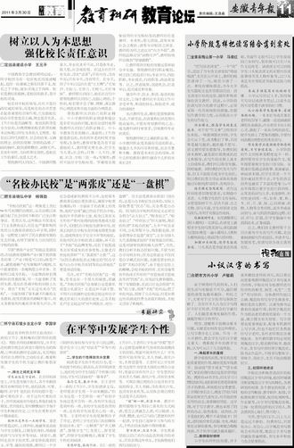 在平等中发展学生个性 □怀宁县石镜乡法龙小学 李国学 最近有幸听到名师王崧舟的《一夜的工作》、窦桂梅的《圆明园的毁灭》。两位名师的课精彩纷呈,许多先进的教学理念在课堂中得到生动的体现,让听课的教师受益匪浅,尤其两位名师在处理师生之间的关系、尊重和发展学生的个性方面让我印象很深刻。 一、师生之间民主平等 学生永远是可爱的。在名师的课堂上,学生是发展中的人,各个年龄段都具有鲜明的个性,他们活泼、可爱、聪明、好学!他们在名师的眼中是一群可爱的孩子。对于这些可爱的孩子,名师真诚地对待他们,和他们成为朋友,赏识他们,及时慷慨地给予每个学生积极的肯定,让学生在爱和关怀中健康成长。 教师只是年长一点的学生。窦老师更是这样,上课伊始,她就笑盈盈地与学生交朋友,以朋友的身份,用商量的语气与学生平等对话。课堂中,教师走进孩子的世界,课堂里弥漫着民主、平等、愉快的情感,教师以一个学习同伴的身份参与学生学习的过程,是学生学习上的“对话者”“平等中的首席”。 二、学生的个性得到充分发展 阅读是学生的个性化行为,是一种高度个性的心智活动,在名师的课堂上,他们充分给学生创造了个性展示的空间,学生可以自由的“一展身手”。 各抒己见,展示个性。在王老师《一夜的工作》中,学生初读课文后,老师要求学生用一个词来概括:“你认为这是一个怎样的一夜?”有的学生说这是辛苦的一夜,有的学生说这是简朴的一夜,有的学生说是负责的一夜,还有的学生说是关心的一夜,等等。王老师对学生的见解都给予了肯定,老师让学生把自己的独特体验说出来,变“一元解读”为“多元解读”,鼓励学生“仁者见仁,智者见智”,珍惜学生独特视点,尊重了学生个性化的阅读。 奇思妙想,张扬个性。在《一夜的工作》中,王老师让学生由“宫殿”想开去:这曾是清朝末代皇帝的叔叔摄政王的官邸,里面可能有些什么?学生想到可能有珠宝,名人书画,真皮沙发,名贵瓷器等。王老师又让学生联想当这里作为堂堂大国的总理办公室时,里面应该有些什么?学生想到应该有名人书画、真皮沙发、没有饮水机等。可现在周总理的办公室没有学生说的珠宝、名人书画,没有真皮沙发,也没有饮水机等,从而体会周总理的生活是多么的简朴。 “读”树一帜,彰显个性。教学中教师鼓励学生用自己喜欢的方式阅读,想怎么读就怎么读,可以轻读、大声读、默读,也可以与自己愿意的伙伴一起读,学生自己选择学习参与的方式,个性在自由选择中得到尊重。 赞不绝口,凸显个性。学生都希望能以自己的行动品尝到成功的欢乐,只有获得这种欢乐,才能激励他们再行动的动力。