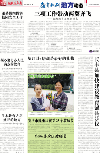 第25个教师节前夕,望江县40名中学英语骨干教师踏上进修学习的行程。他们将围绕职业技能、观摩研讨、交流实践等方面,在安庆师范学院中学英语教师高级研修班进行一个学期的进修培训。这是继2008年望江县选派30名中小学校长参加安庆市首批“领雁工程”取得重大成效之后,又一次选派骨干教师赴高等院校学习的活动。 据了解,望江县还将组织其他专业骨干教师到安庆师范学院进修学习,以不断提高教师的教学水平。